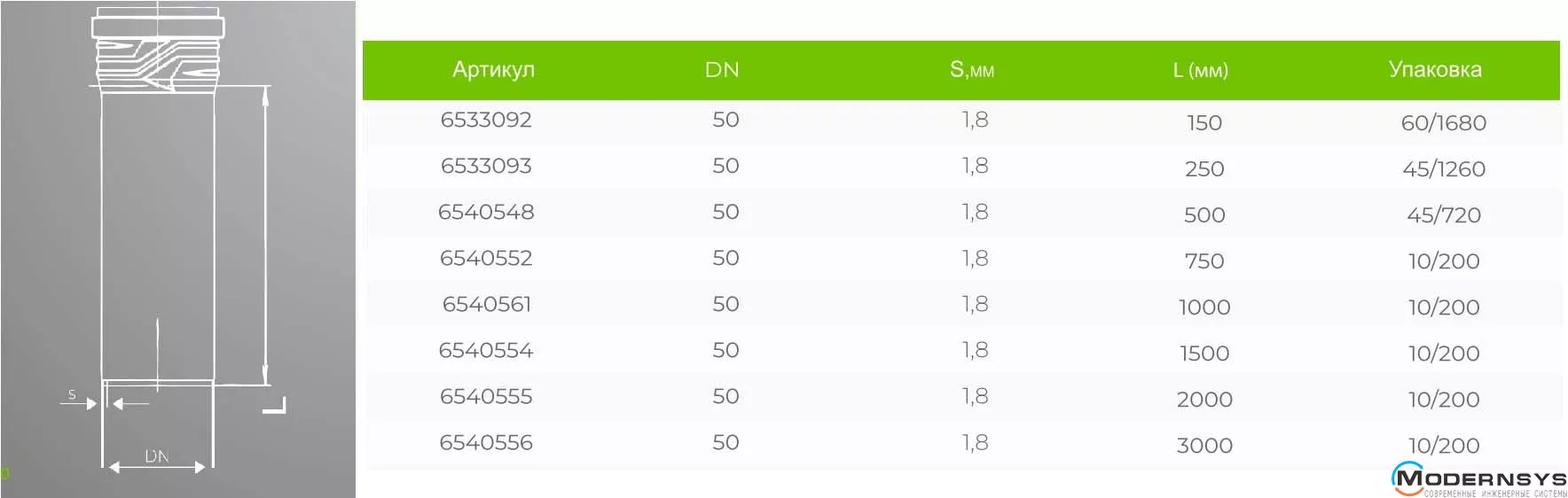 Технические характеристики: Труба канализационная ASG (АСГ) HTR 50x150
