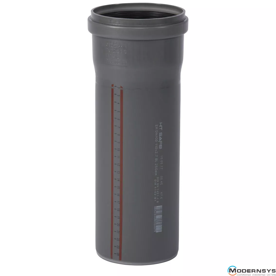 Труба канализационная Ostendorf HT-Safe 110*150, Вариант: С раструбом, Вид канализации: Внутренняя, Тип канализации: Простая, Цвет: Темно-серый, Диаметр (мм): 100, Толщина стенки (мм): 2.7, Длина (мм): 150, Материал: Полипропилен PPR, фото Труба канализационная Ostendorf HT-Safe 110*150