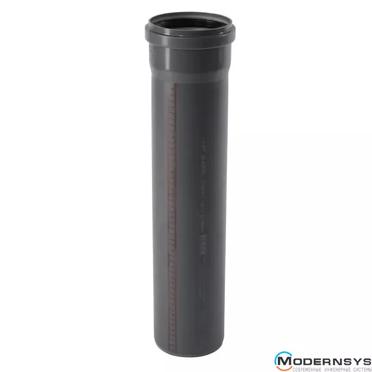 Труба канализационная Ostendorf HT-Safe 125*750, Вариант: С раструбом, Вид канализации: Внутренняя, Тип канализации: Простая, Цвет: Темно-серый, Диаметр (мм): 125, Толщина стенки (мм): 3.1, Длина (мм): 750, Материал: Полипропилен PPR, фото Труба канализационная Ostendorf HT-Safe 125*750