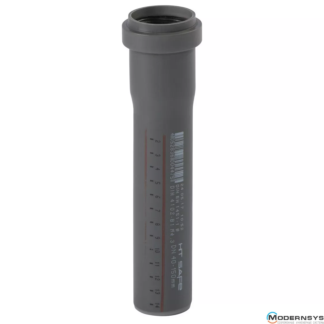 Труба канализационная Ostendorf HT-Safe 110*150, Вариант: С раструбом, Вид канализации: Внутренняя, Тип канализации: Простая, Цвет: Темно-серый, Диаметр (мм): 100, Толщина стенки (мм): 2.7, Длина (мм): 150, Материал: Полипропилен PPR, фото Труба канализационная Ostendorf HT-Safe 110*150