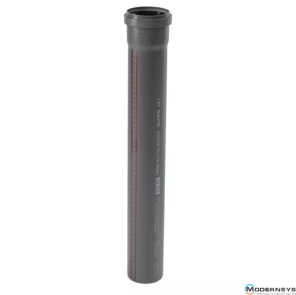 Труба канализационная Ostendorf HT-Safe 75*750, Вариант: С раструбом, Вид канализации: Внутренняя, Тип канализации: Простая, Цвет: Темно-серый, Диаметр (мм): 75, Толщина стенки (мм): 1.9, Длина (мм): 750, Материал: Полипропилен PPR, фото Труба канализационная Ostendorf HT-Safe 75*750