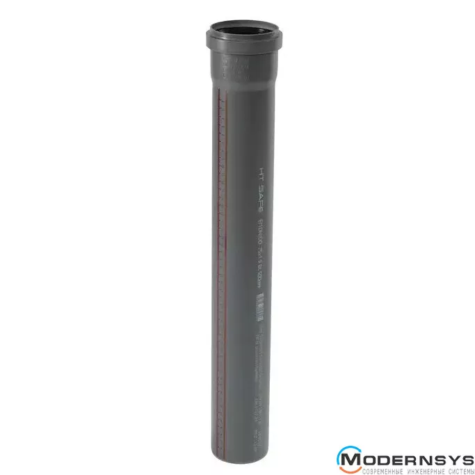 Труба канализационная Ostendorf HT-Safe 125*750, Вариант: С раструбом, Вид канализации: Внутренняя, Тип канализации: Простая, Цвет: Темно-серый, Диаметр (мм): 125, Толщина стенки (мм): 3.1, Длина (мм): 750, Материал: Полипропилен PPR, фото Труба канализационная Ostendorf HT-Safe 125*750