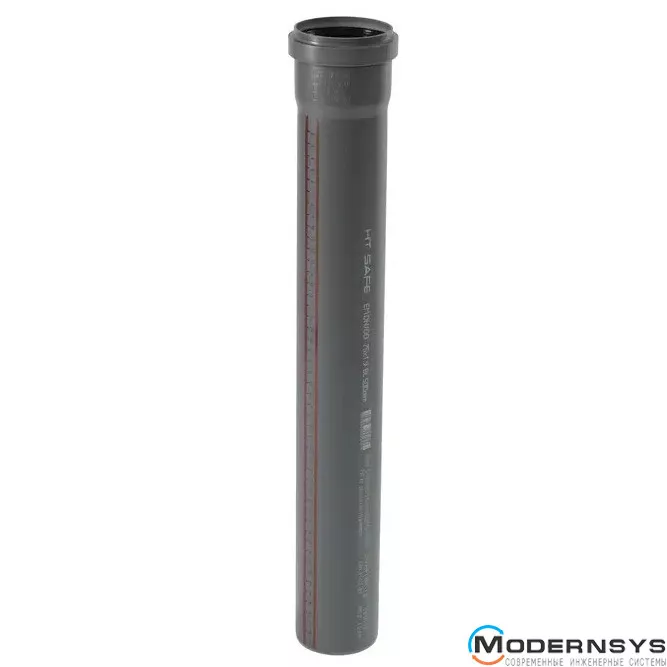 Труба канализационная Ostendorf HT-Safe 125*750, Вариант: С раструбом, Вид канализации: Внутренняя, Тип канализации: Простая, Цвет: Темно-серый, Диаметр (мм): 125, Толщина стенки (мм): 3.1, Длина (мм): 750, Материал: Полипропилен PPR, фото Труба канализационная Ostendorf HT-Safe 125*750