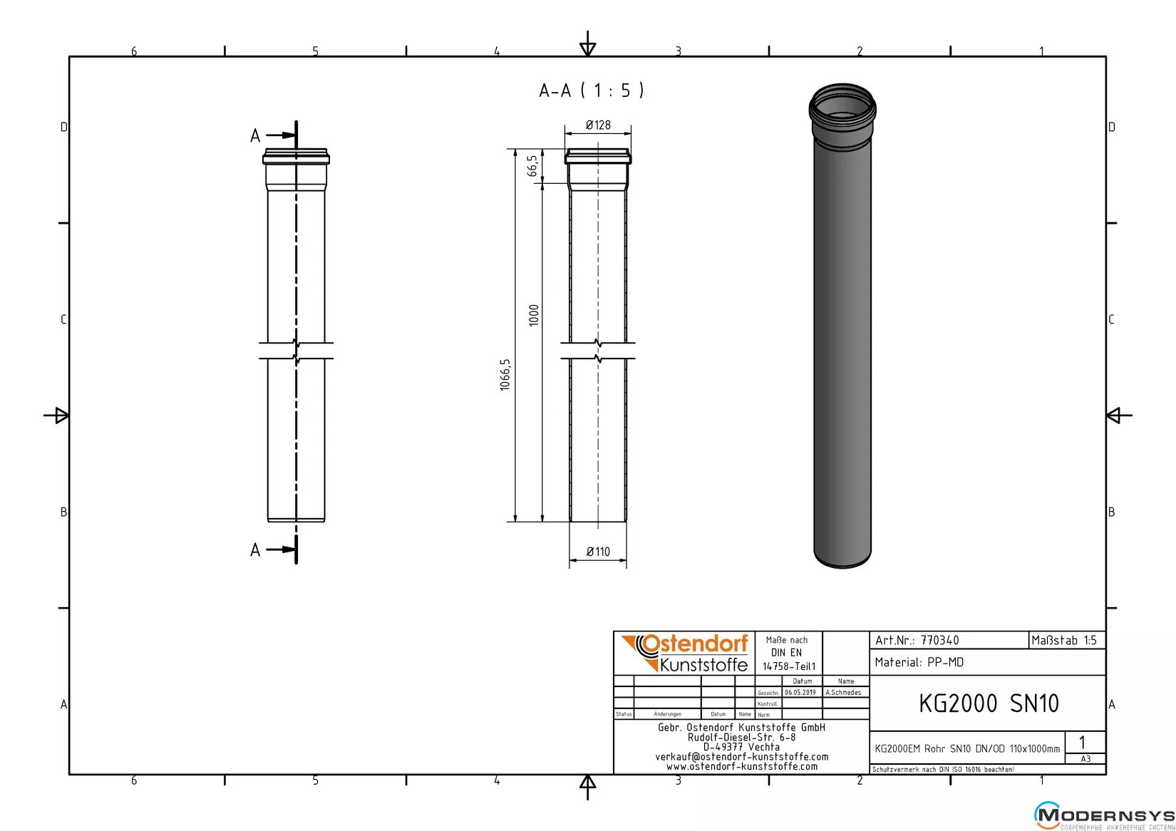Технические характеристики: Труба канализационная Ostendorf (Остендорф) KG2000EM 110х1000 мм