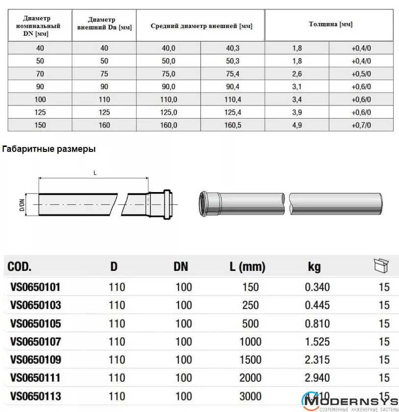 Технические характеристики: Труба канализационная Valsir (Валсир) Triplus Ø110 L=150 мм