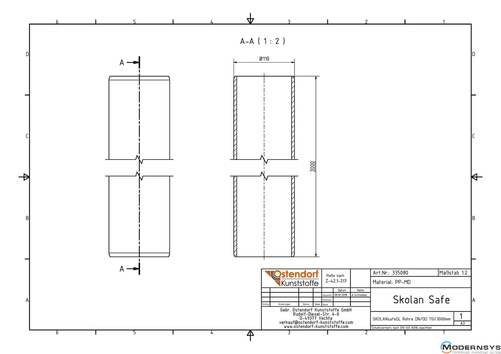 Бренд: Ostendorf; Тип товара: Труба; Вид канализации: Внутренняя; Тип канализации: Бесшумная; Цвет: Светло-серый; Диаметр (мм): 100; Толщина стенки (мм): 5.3; Длина (мм): 3000; Материал: Полипропилен PPR; Производитель: Германия