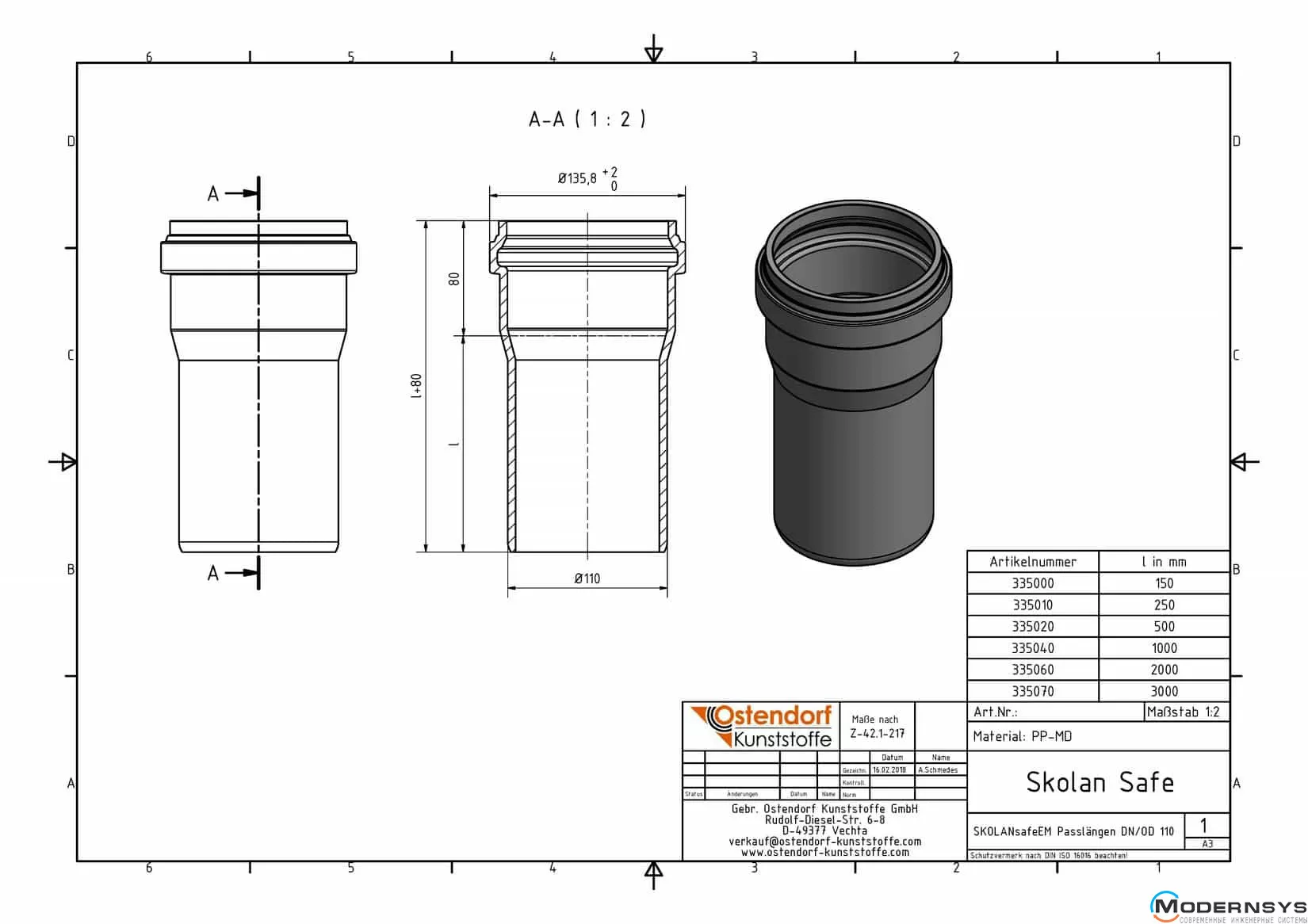 Технические характеристики: Труба Ostendorf (Остендорф) Skolan db 100х3000 (335070)