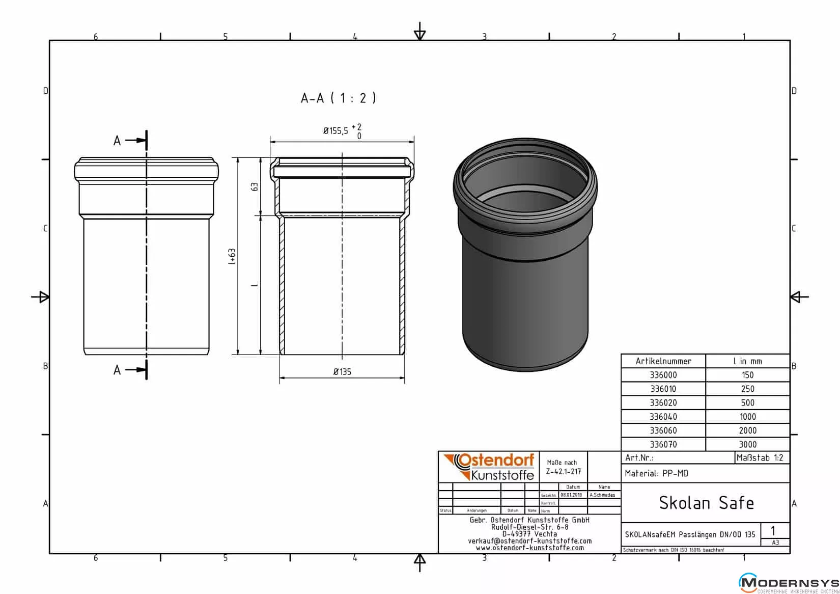 Бренд: Ostendorf; Тип товара: Труба; Вид канализации: Внутренняя; Тип канализации: Бесшумная; Цвет: Светло-серый; Диаметр (мм): 125; Толщина стенки (мм): 5.3; Длина (мм): 150; Материал: Полипропилен PPR; Производитель: Германия