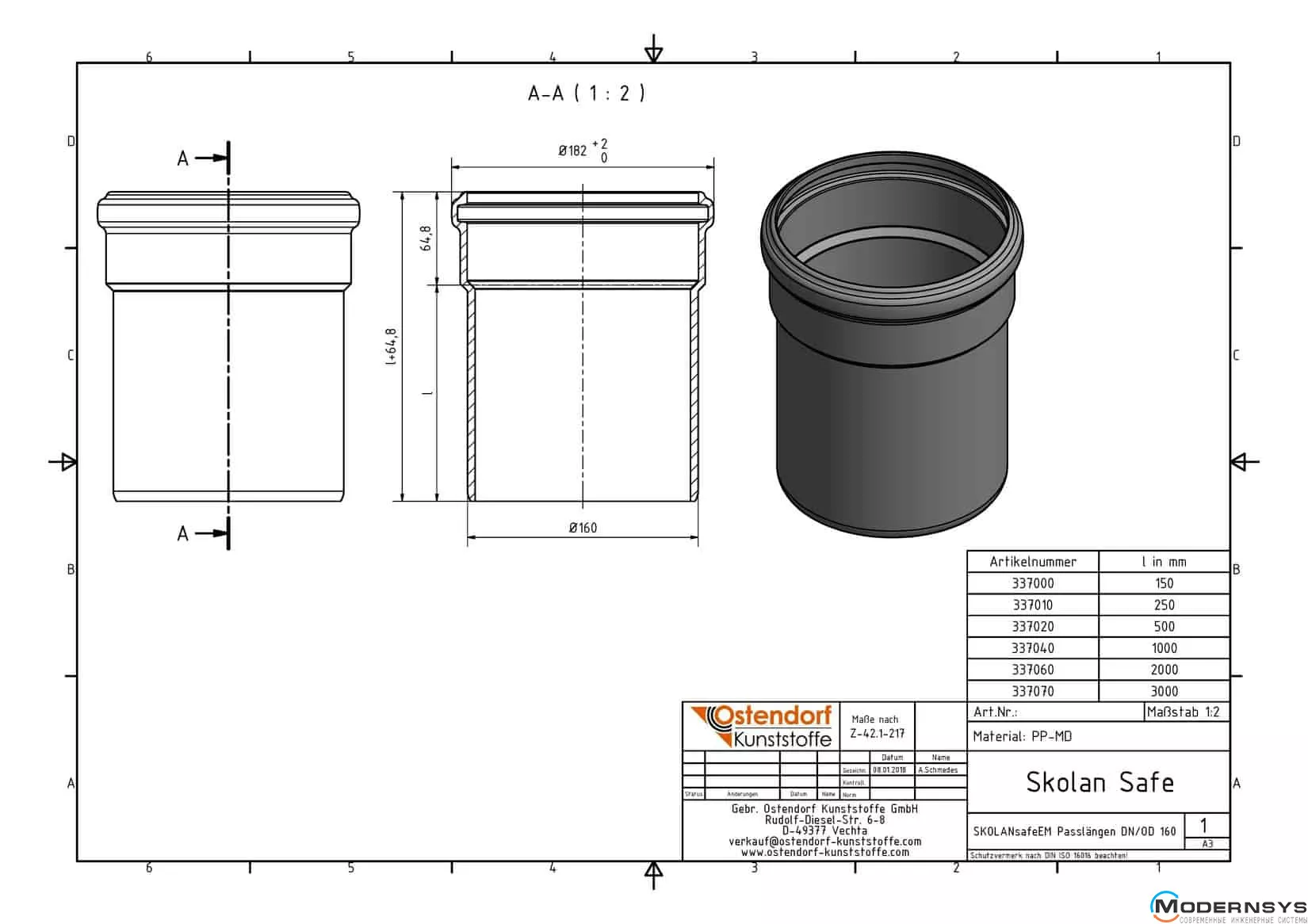 Бренд: Ostendorf; Тип товара: Труба; Вид канализации: Внутренняя; Тип канализации: Бесшумная; Цвет: Светло-серый; Диаметр (мм): 150; Толщина стенки (мм): 5.3; Длина (мм): 500; Материал: Полипропилен PPR; Производитель: Германия