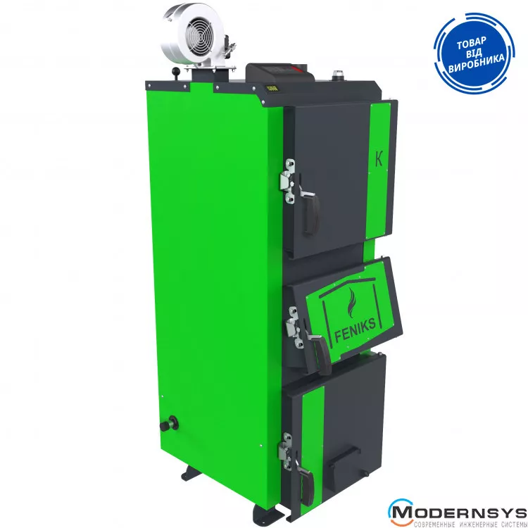 Описание: Твердотопливный котел Feniks (Феникс) серия K Plus 17 кВт с автоматикой и вентилятором