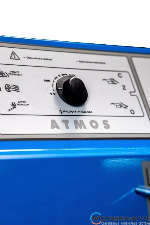 ATMOS DC 100 оборудован электронным регулятором, который автоматически управляет работой вентилятора и поддерживает оптимальный режим горения. Это повышает безопасность эксплуатации и снижает необходимость постоянного ручного контроля со стороны пользователя.