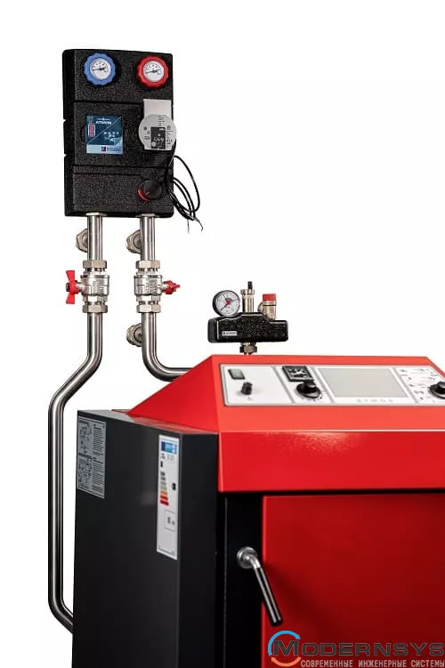 УСTАНОВКА КОTЛОВ: Котлы ATMOS отличаются сравнительно небольшими размерами и массой, что значительно упрощает их монтаж. Котел должен быть оборудован терморегуляторным клапаном или «Laddomat 21» и необходимой регулировкой – температура возвратной воды должна быть не менее 65 °С. Рабочая температура должна быть в пределах 80-90 °С. Рекомендуется устанавливать котлы с аккумуляторными баками. Котел нельзя устанавливать в жилых комнатах, но только в специально отведенном, хорошо вентилируемом, котельном помещении.