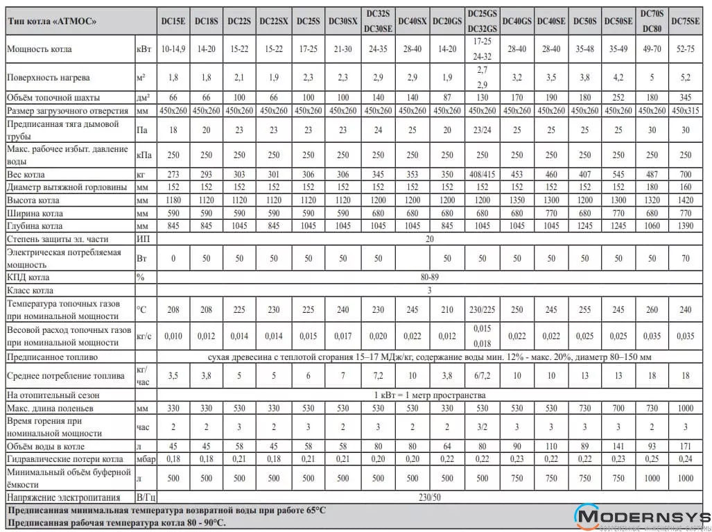 Технические характеристики: Твердотопливный пиролизный котел ATMOS (Атмос) DC 22 S