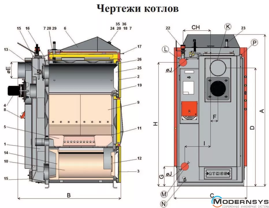 Описание: Твердотопливный пиролизный котел ATMOS (Атмос) DC 32 S