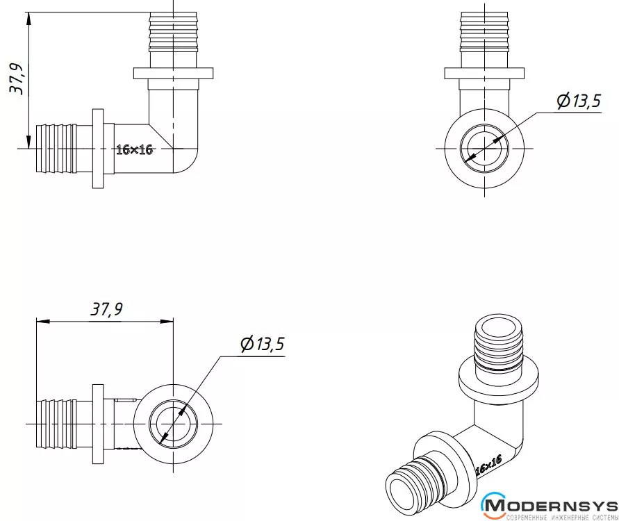 Технические характеристики: Угольник натяжной 90° FADO (Фадо) SLICE NEW 16 мм