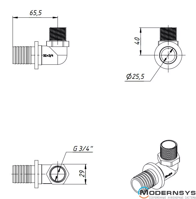 Технические характеристики: Угольник натяжной с наружной резьбой FADO (Фадо) SLICE NEW 32*3/4" С