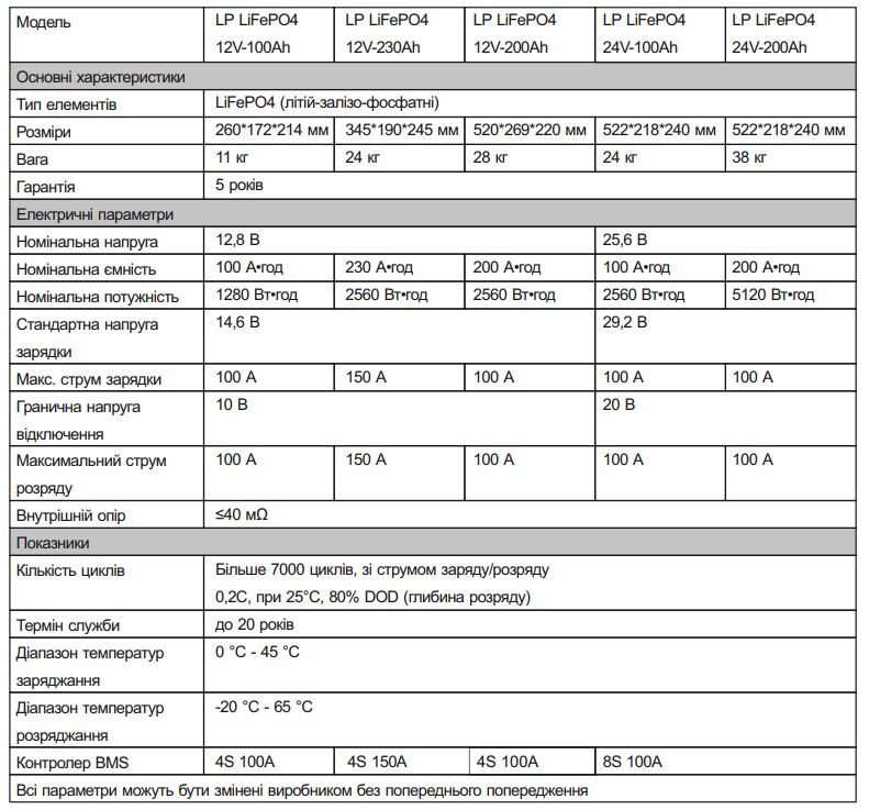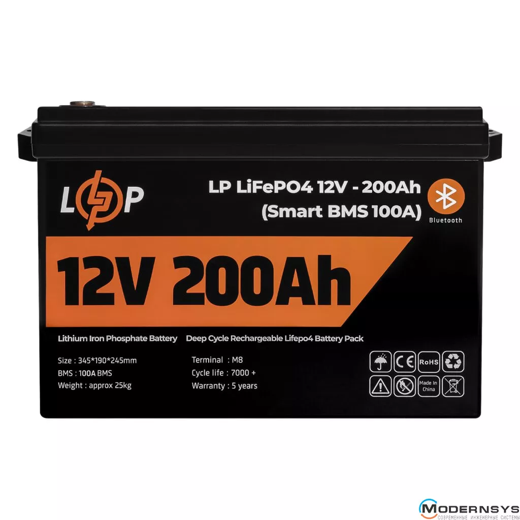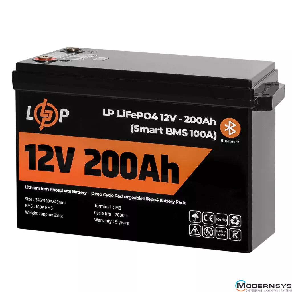 Технічні характеристики: Акумулятор LogicPower (Лоджик Повер) LiFePO4 12V (12,8V) - 200 Ah (2560Wh) (Smart BMS 100А) з BT пластик для ДБЖ
