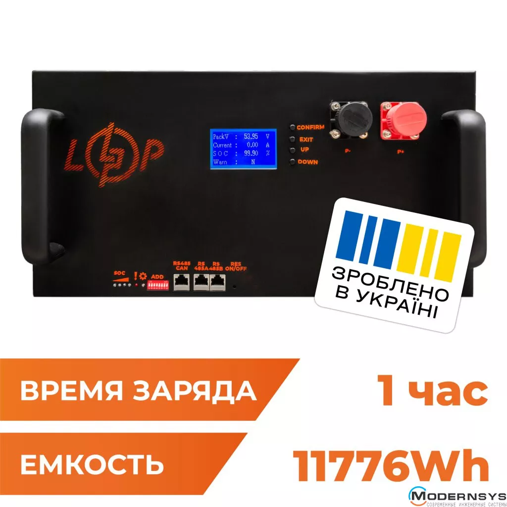 Опис: Акумулятор LogicPower (Лоджик Повер) LiFePO4 51,2V - 230 Ah (11776Wh) (Smart BMS 200A/100А) з LCD метал RM