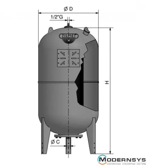 Технічні характеристики: Бак розширювальний Zilmet (Зилмет) ULTRA-PRO 1500 л 1 1/2"G вертикальний