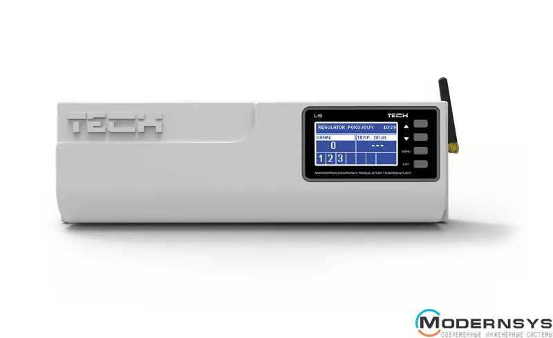 Контролер Tech L-8e призначений для провідного та бездротового обслуговування клапанів за допомогою радіосигналу. Він дозволяє заощаджувати енергію завдяки точному температурному управлінню окремих приміщень будівлі. Завдяки розширеному програмному забезпеченню регулятор може виконувати низку функцій.