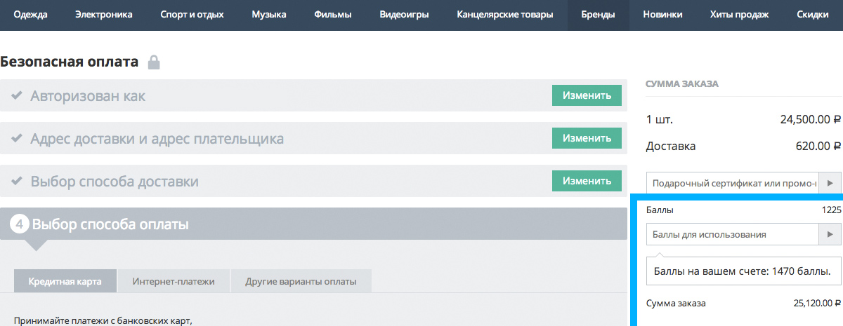 Завершуючи покупку, вам необхідно ввести наявні бонусні бали в полі "Бонусні бали", і вартість вашої покупки буде автоматично перерахована.