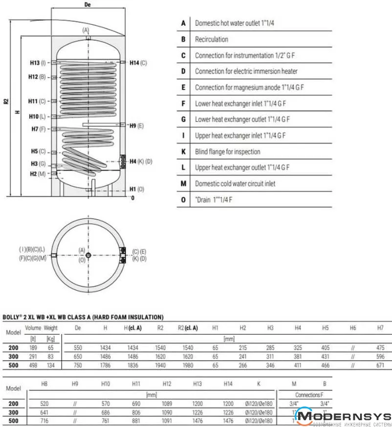 Технічні характеристики: Бойлер Cordivari (Кордивари) 500 л BOLLY® 2 XL (2 теплообмінники, підключення по осі) WB (жорстка незнімна ізоляція) POLYWARM®