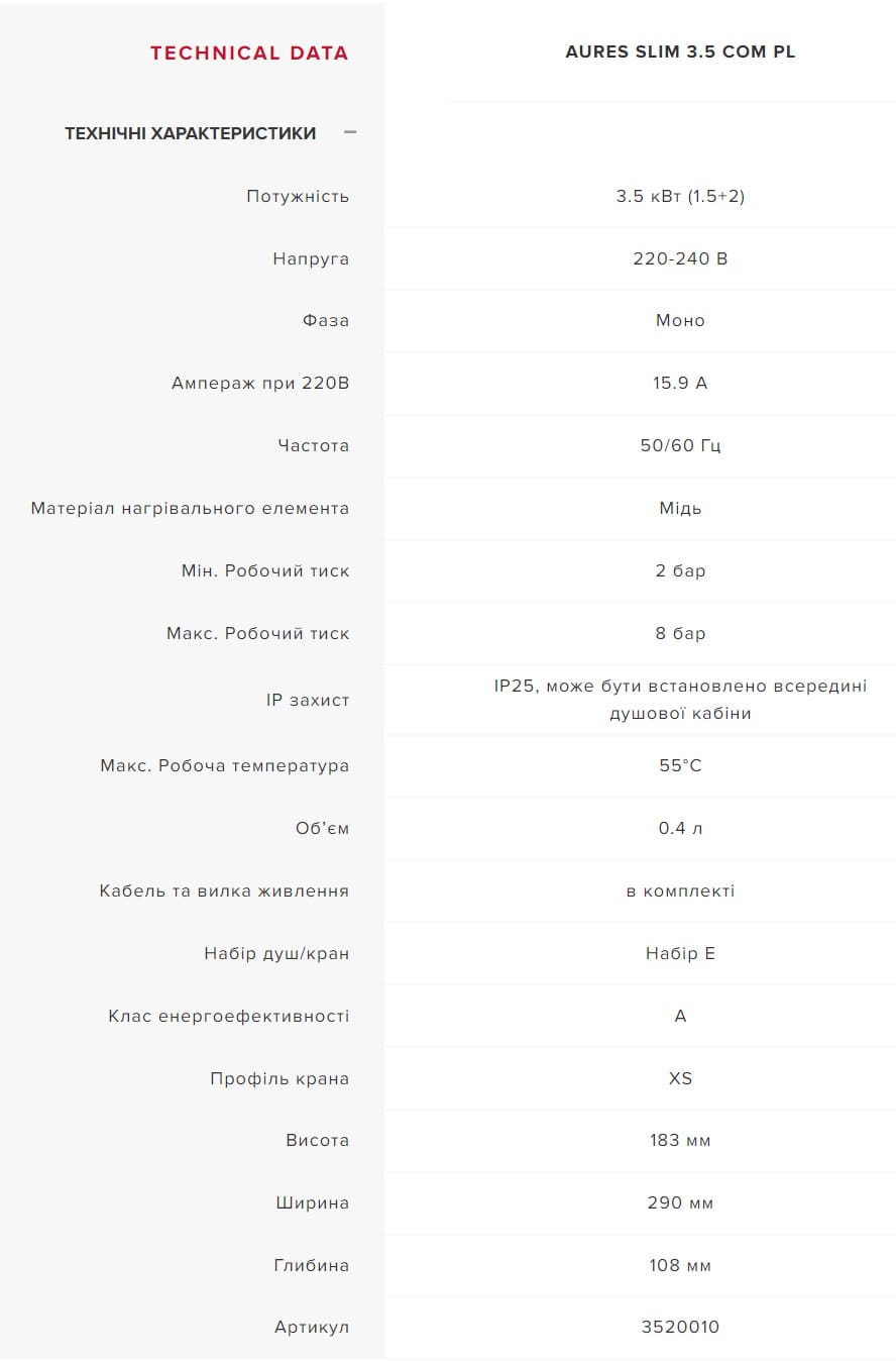 - Трубчастий нагрівальний елемент потужністю 3,5 кВт подає гарячу воду протягом 15-20 секунд після відкриття крана.