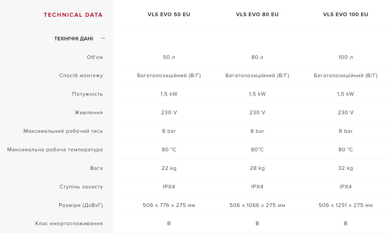 Технічні характеристики: Бойлер електричний Ariston (Аристон) VLS EVO 80 EU