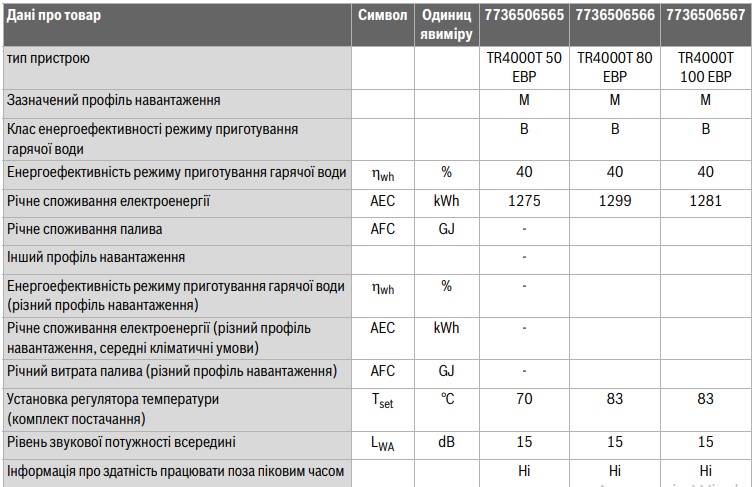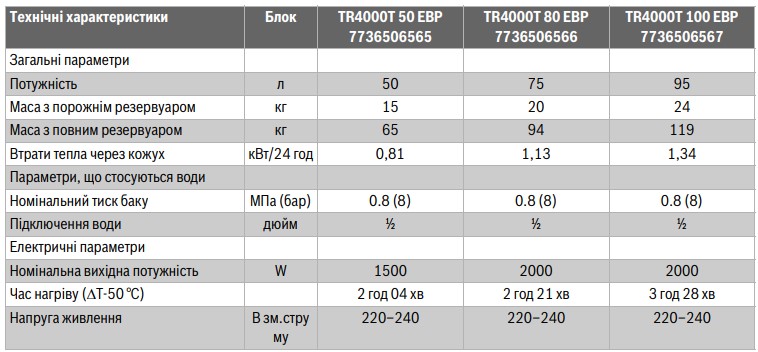 Технічні характеристики: Бойлер електричний Bosch (Бош) TR4000T 50 EBP