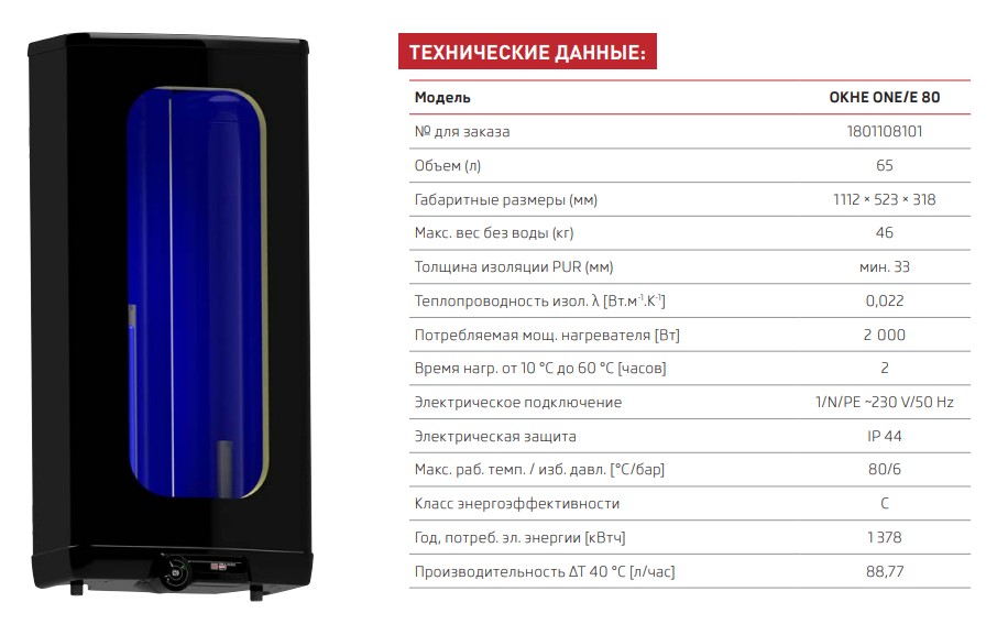 Drazice OKHE ONE/E 80 – плоский електричний водонагрівач з керамічним нагрівальним елементом та можливістю встановлення поблизу точок відбору.
