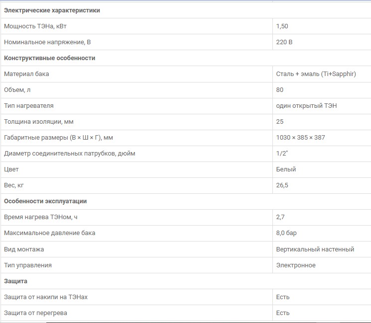 Технічні характеристики: Бойлер електричний Midea (Мидея) EW1 D80-15EW1(W)