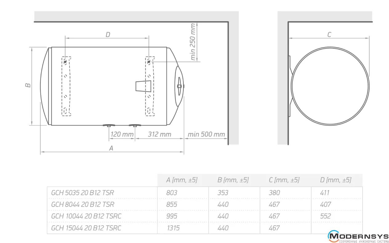 Технічні характеристики: Електричний бойлер Tesy (Теси) BILIGHT горизонтальний 101 л. - GCH 1004430 B12 TSR