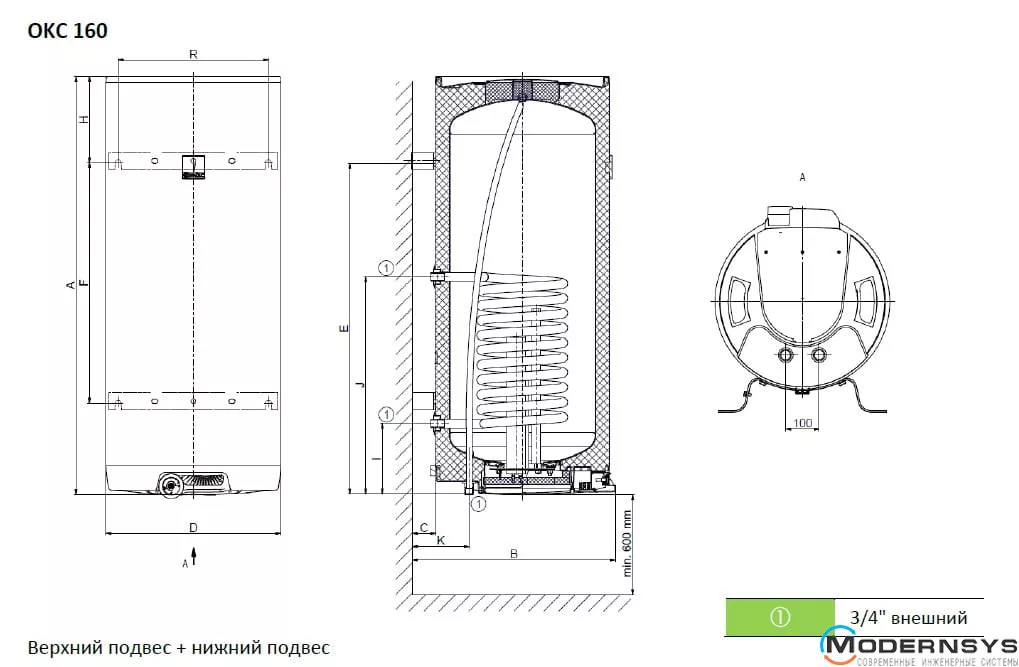 Технічні характеристики: Бойлер комбінований Drazice (Дражица) OKC 160 4 kWt