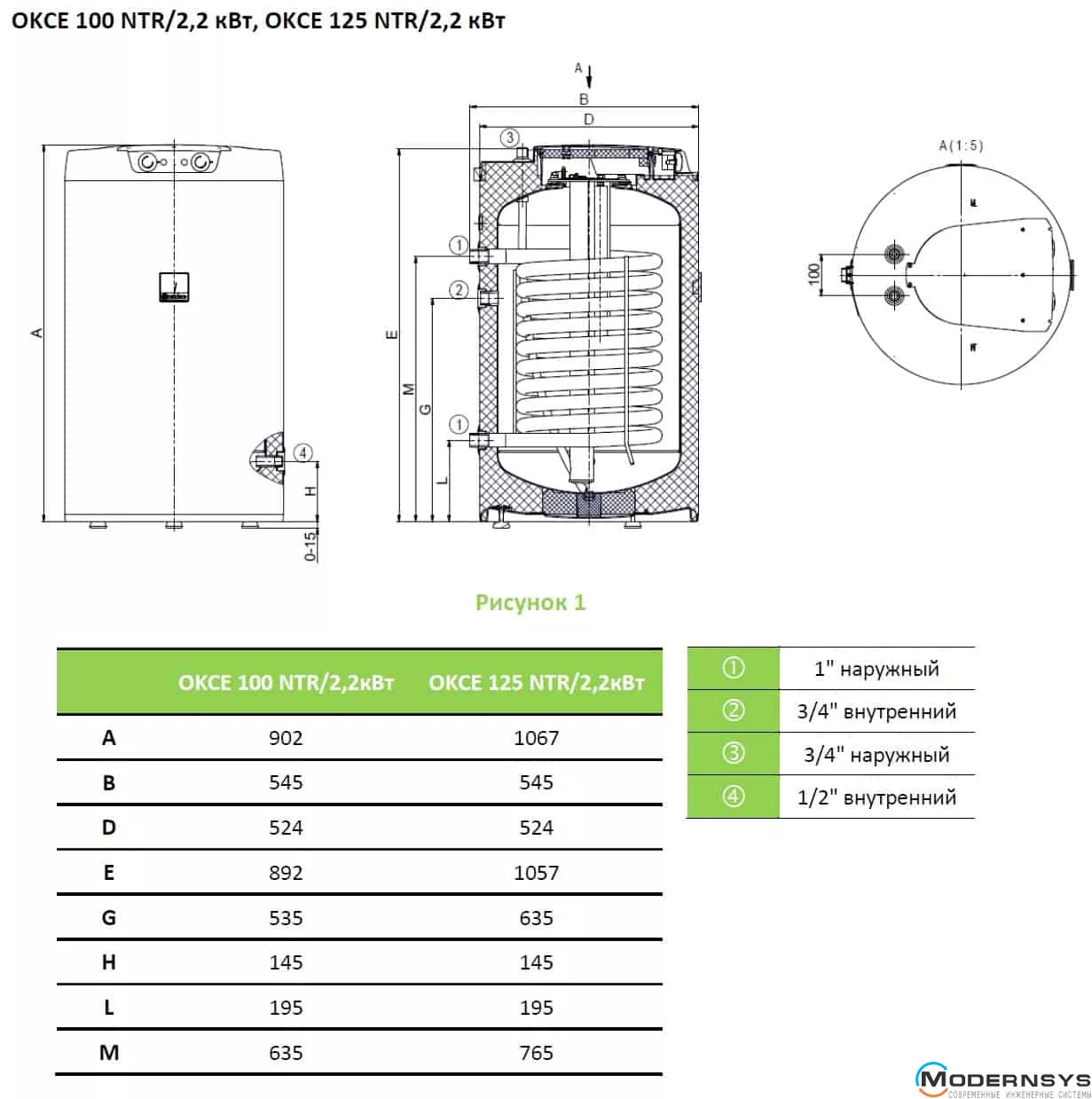 Технічні характеристики: Бойлер комбінований Drazice (Дражица) OKCE 125 NTR/2,2kW