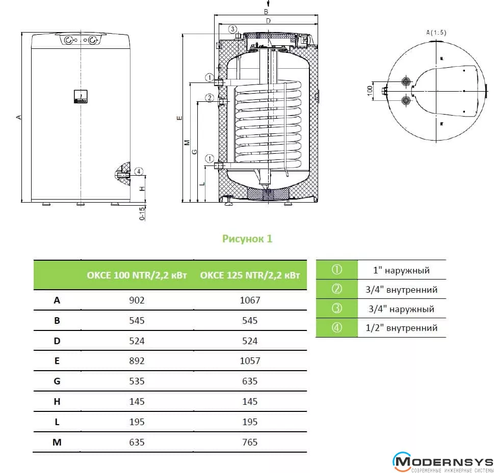 Технічні характеристики: Бойлер комбінований Drazice (Дражица) OKCE 125.1 NTR/HV/2,2kW