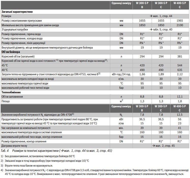 Технічні характеристики: Бойлер непрямого нагріву Bosch (Бош) W 300-5 P1 B