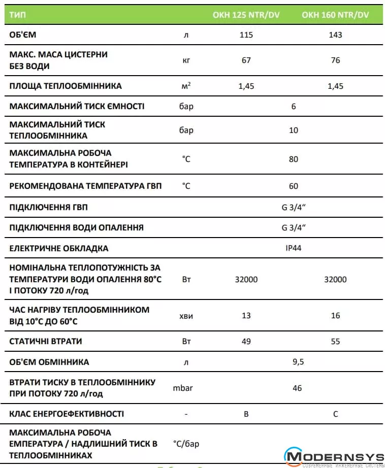 Технічні характеристики: Бойлер непрямого нагріву Drazice (Дражица) OKH 125 NTR/DV