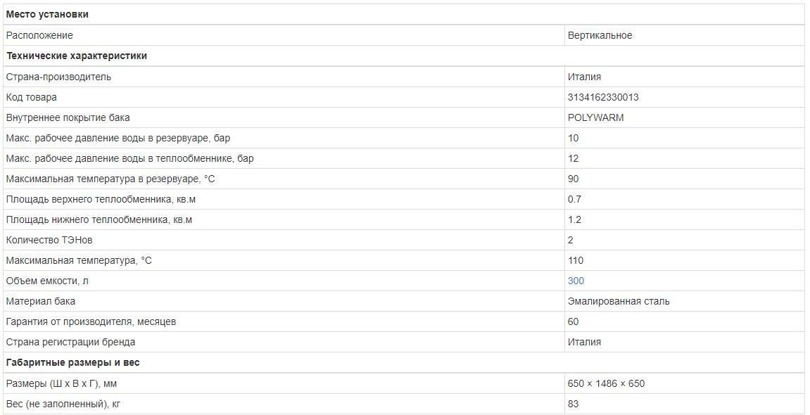 Технічні характеристики: Бойлер непрямого нагріву Cordivari (Кордивари) 300 л BOLLY 2 ST FB WB POLYWARM