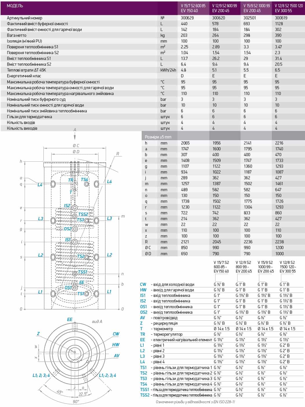 Технічні характеристики: Буферна ємність "бак у баку" Tesy (Теси) 1128 л./302 л. - V12/8 S2 1500 120EV 300 55C