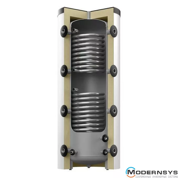 - З 2 гладкотрубними теплообмінниками для приєднання додаткового джерела нагріву, наприклад геліоустановки