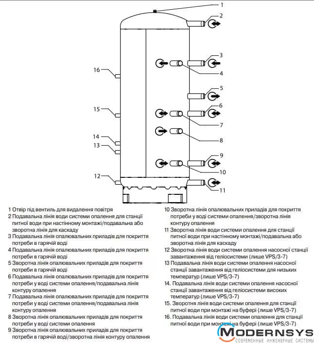 Буферний накопичувач для комбінації з тепловими насосами, підлоговими та навісними газовими котлами всіх типів, твердопаливними котлами, сонячними системами.