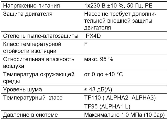 Технічні характеристики для серії циркуляційних насосів Grundfos ALPHA1 L