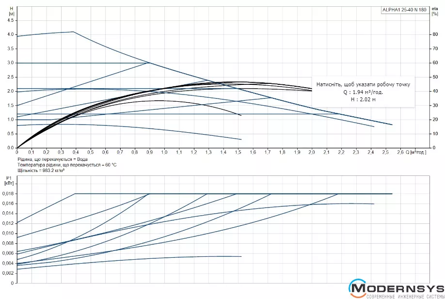 Технічні характеристики: Циркуляційний насос Grundfos (Грундфос) ALPHA1 25-40 N 180 1x230V 50Hz 6H