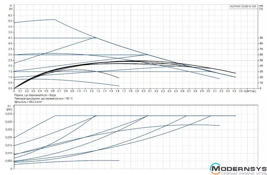 Технічні характеристики: Циркуляційний насос Grundfos (Грундфос) ALPHA1 25-60 N 130 1x230V 50Hz 6H