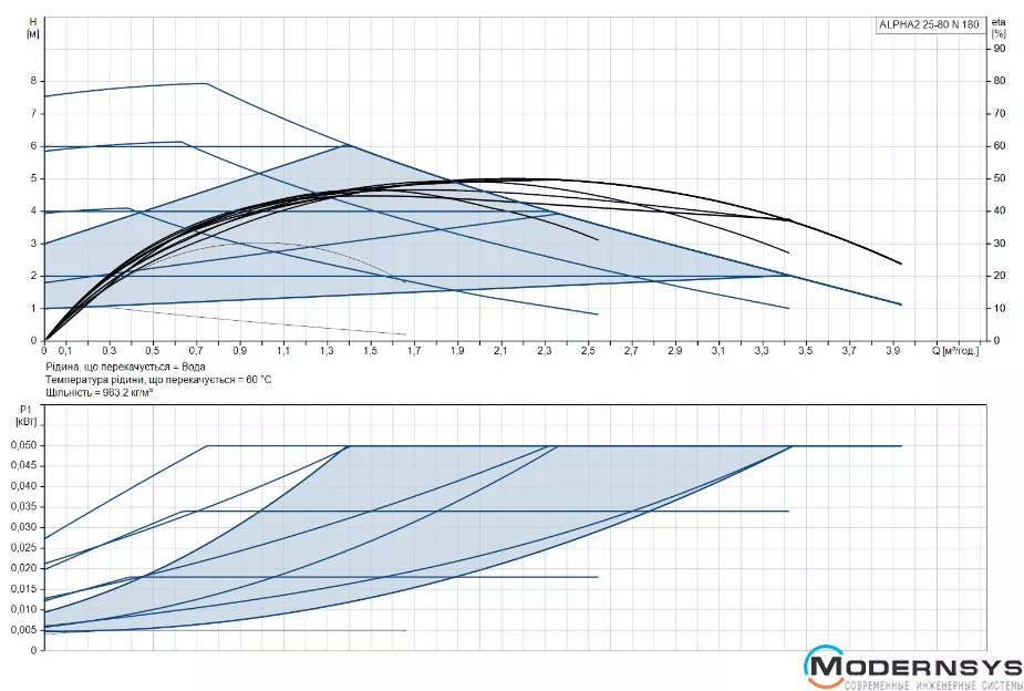 Технічні характеристики: Циркуляційний насос Grundfos (Грундфос) ALPHA2 25-80 N 180 1x230V 50Hz 6H
