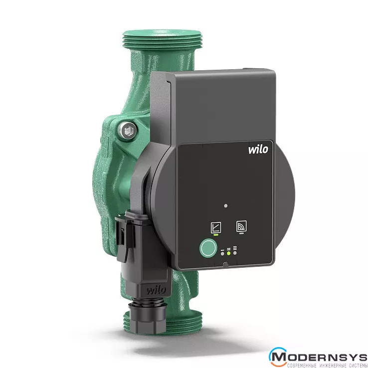 Циркуляційний насос з мокрим ротором з різьбовим з'єднанням, стійкий до струмів блокування ЄС-двигун та вбудований електронний пристрій регулювання потужності.