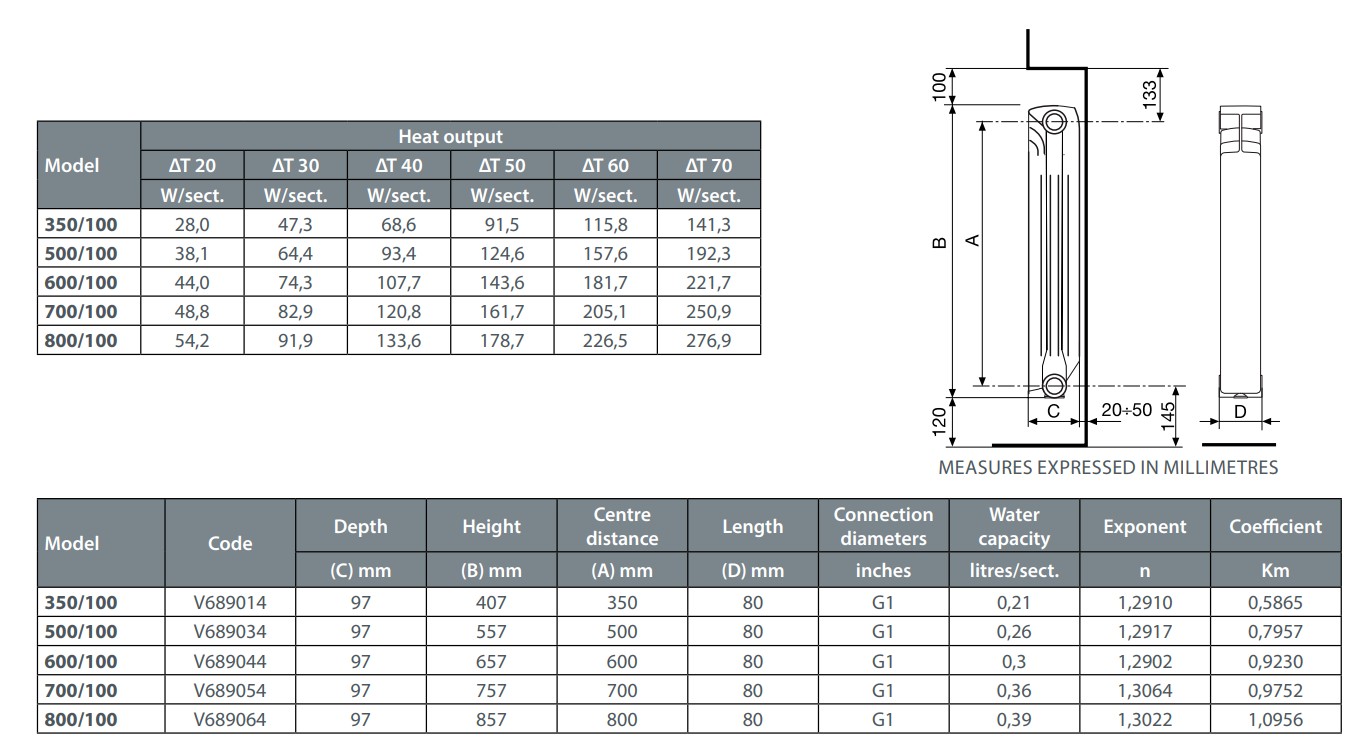 Технічні характеристики: Дизайн радіатор Nova Florida (Нова Флорида) (6 секцій) EXTRATHERMSERIR SUPER B4 500/100