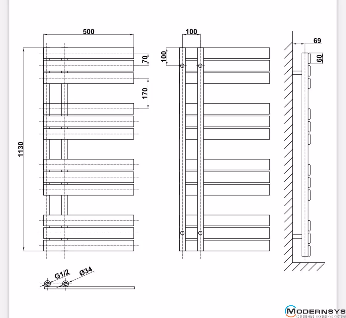 Технічні характеристики: Дизайнерський сушка для рушників ARTTIDESIGN (Арттидизайн) Antibes 12/1130 сірий