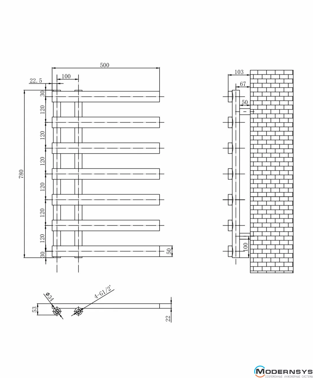 Технічні характеристики: Дизайнерський сушка для рушників ARTTIDESIGN (Арттидизайн) Eze 7/780 білий матовий
