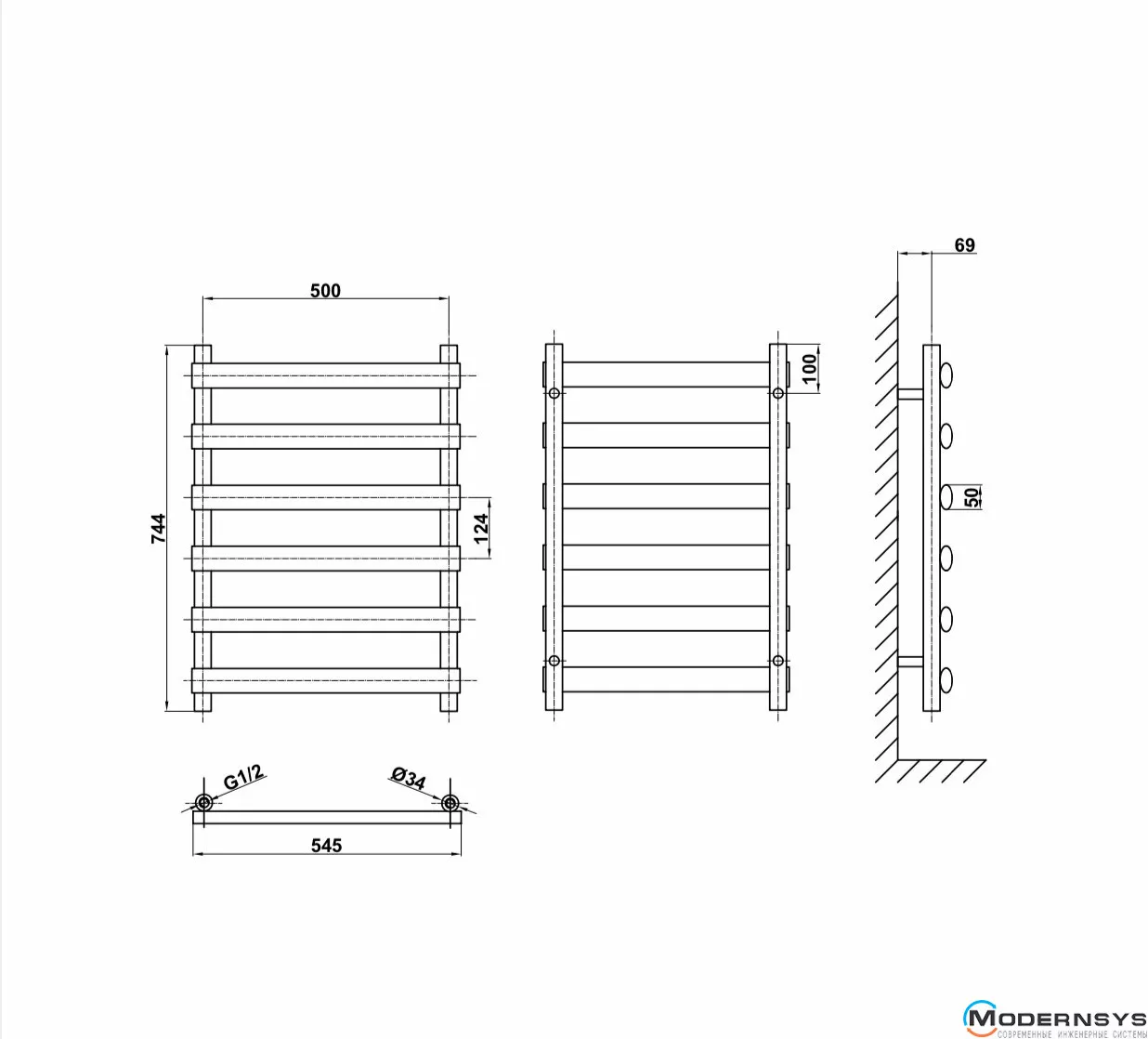 Технічні характеристики: Дизайнерський сушки для рушників ARTTIDESIGN (Арттидизайн) Menton 6/744 сірий